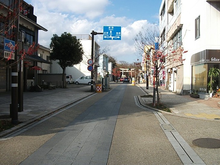 現在の旧・下田街道。歩道も石畳で電線が地中に埋設され、すっきりした風景だ。