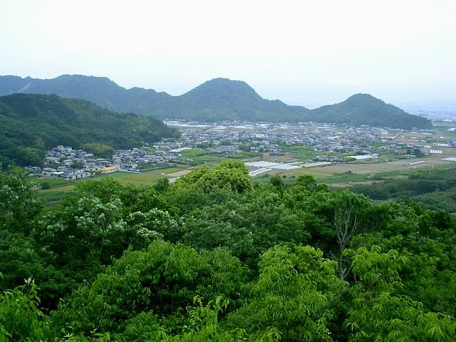 北西の北江間方向。中央左の山裾が義時菩提寺の北條寺、義時舘跡も近い。