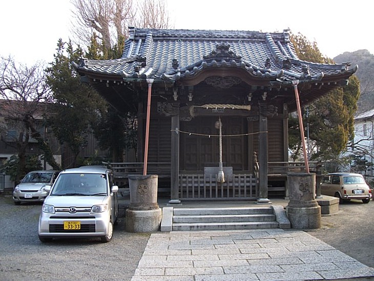 蛇苦止堂の西、滑川対岸の蛭子神社。本覚寺門前の夷堂が神仏分離でここに移転した。