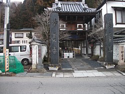 道の駅「湯の香しおばら」から国道400号(20km先で国道121号(会津西街道)に合流する)をひたすら西へ、約10kmで参道入口に到着する。ここには駐車できないから、手前約300mの信号(塩原小学校前)右の観光案内所(清潔なトイレあり)の敷地を抜けた所に観光客用の広い駐車場があるし、そのまま進んで妙雲寺通用門を右折すると参拝者専用の駐車場もある。