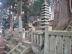 左: 右が塩原城主塩原八郎家忠、左が塩原城主小山越前守刑部太夫の墓。塩原城跡は妙雲寺から約3km上流(地図)で、治承二年(1178)に