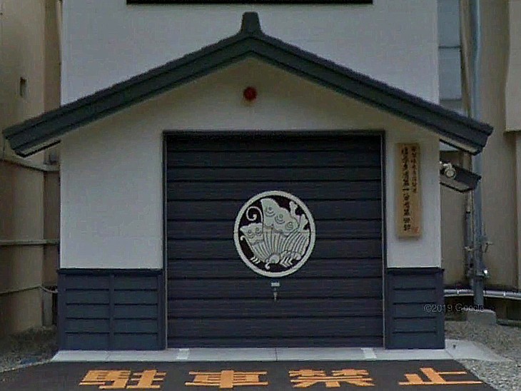 消防施設のシャッターには平家の揚羽蝶紋(画像)が描いてある。貞能らが庵を営んだだけが平家との接点だが、観光に寄与する企画ではある。