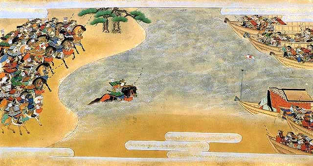 屋島の合戦 扇の的をを射抜く那須与一(江戸初期の作。平家物語 全三十六巻の巻第十一の上)