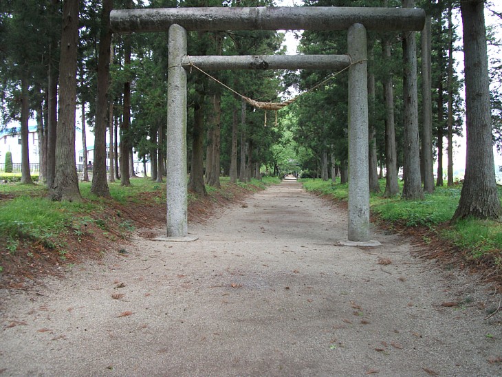 国道461号から拝殿まで300mの参道が続く。左側は