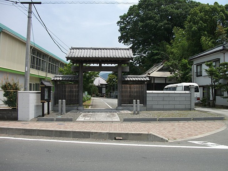 仁田家菩提寺の慶音寺山門。駿豆線の伊豆仁田駅から500m、畑毛温泉も近い。