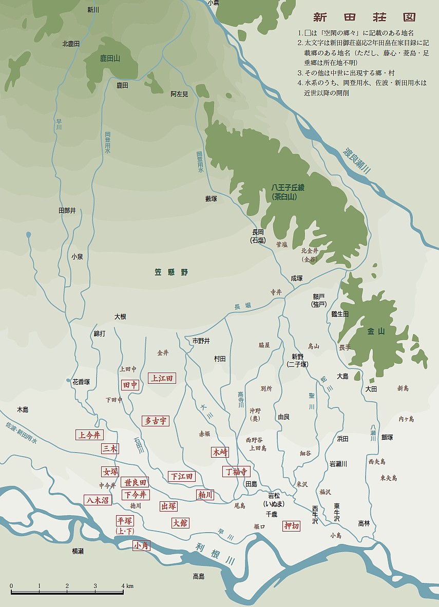 新田荘の水脈と水源