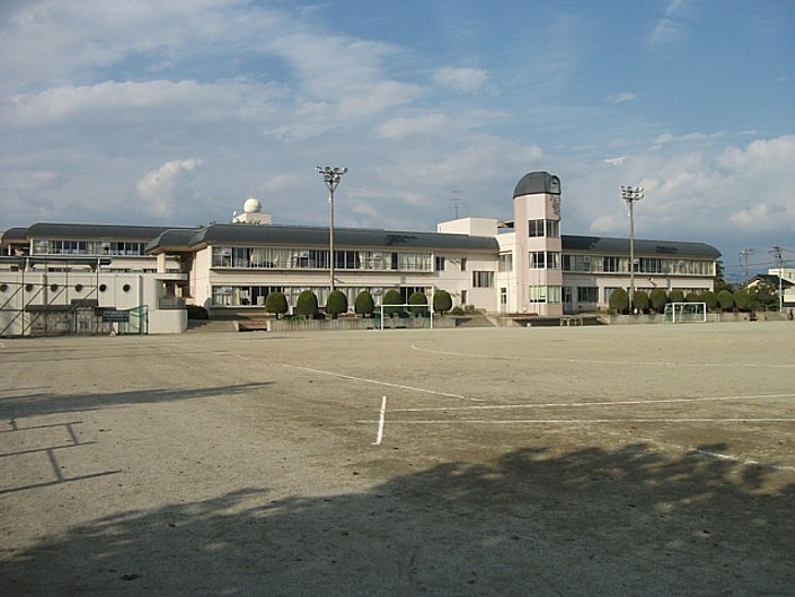 長清の館跡に建つ小笠原小学校。地名は御所庭だが、既に往時の面影は見られない。