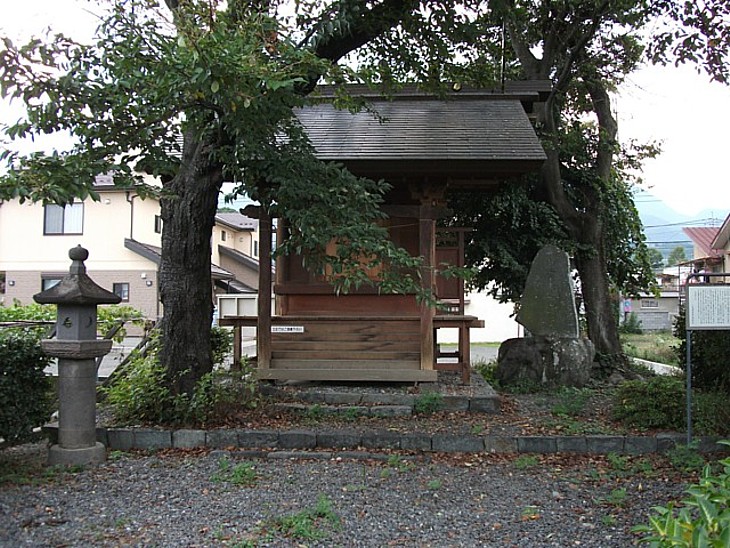 山寺八幡神社の150m東の路地裏の長清公祠堂。長清の遺骨を子孫が分骨埋葬したものと伝わる。