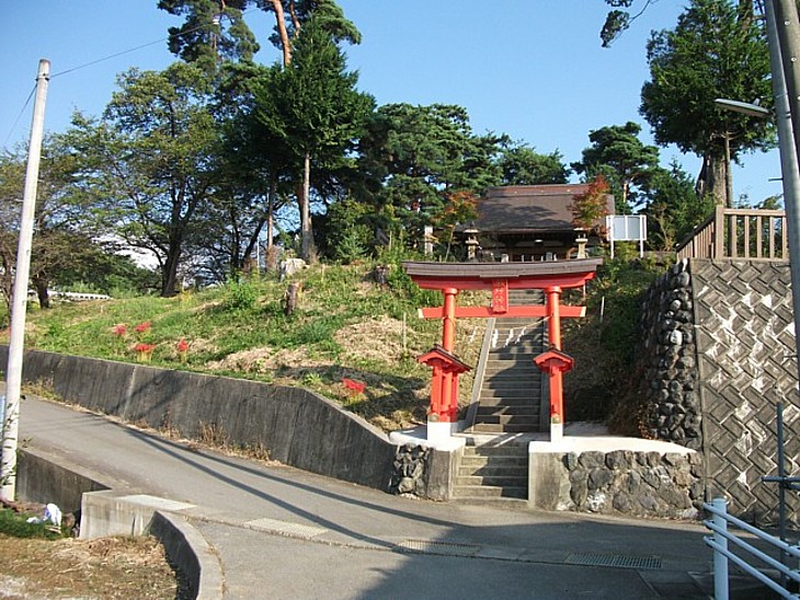 加賀美遠光の長男で秋山を名乗った太郎光朝の館跡、熊野神社。