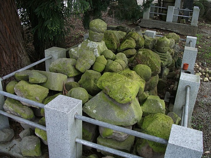 累々と並ぶ一族の五輪塔は併せて30基程度か。既に組み合せも不明、もちろん刻銘もない。