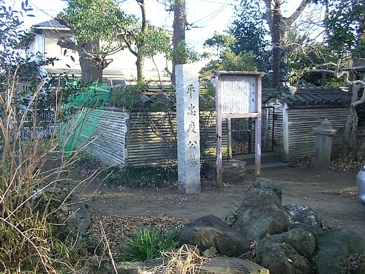 境内左手の築地塀が忠度の墓所。他にも4月中旬に咲く忠度桜や忠度の腕塚などがある。