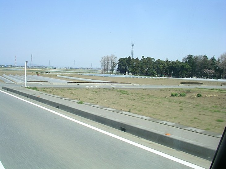 北東にある菅原神社(画像右の林)から普済寺までの約400m四方が岡部氏の館跡。