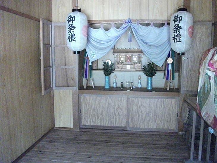 湖に流れ込む落合川沿いの奥野神社。移転の有無は別にして、旧奥野部落の鎮守だったのは間違いない。