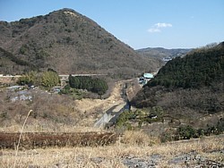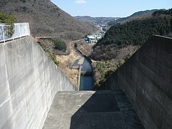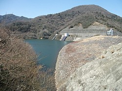 昭和47年(1972)に水道水源の確保を兼ねたダム工事の計画がスタート、昭和58年(1989)に土と石を積み上げた斜面で貯水を支える構造のロックフィル型ダムが完成し、湖底に水没する奥野地区から27所帯が移転した。