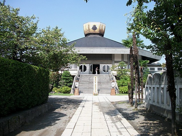 参道は春には桜のトンネルとなる。右側は遠光寺運営の児童養護施設・立正光生園。