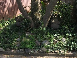 上: 道が狭くてすぐ上には新幹線の高架が通っており、お世辞にも環境が良いとは言えない。昔はかなり大きな塚だったと伝わっているが、