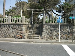 現在は由比ヶ浜との間に国道134号が通っているが境内の標高は7m、鎌倉時代の海岸線はこの社殿付近だったと推定される。
