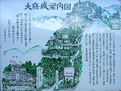 形成する、周囲との高低差約100mの山城である。案内図では急峻だが頂上の本丸跡まで車で登れるから特に難攻不落と言うほどではなく、濠や土塁の跡も基治時代か後世の物か