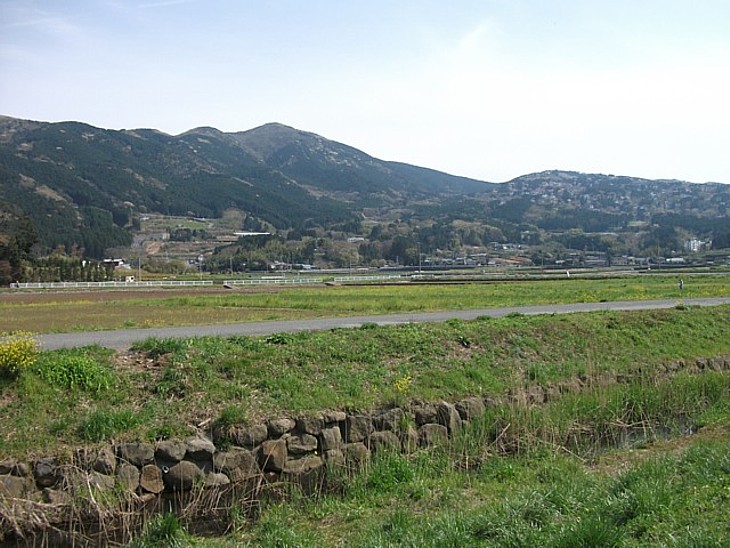 南西は韮山方向。山の斜面には4000区画以上の別荘地 南箱根ダイヤランドが広がる。