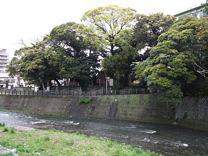 少し上流の対岸から。松川(伊東大川)は流程わずか8kmだが鮎釣りもできる清流だ。