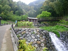 右側・・木和田川には石積みの堰堤が造られ、ちょっと昔風の木橋が架けられて江戸時代の雰囲気を醸し出している。