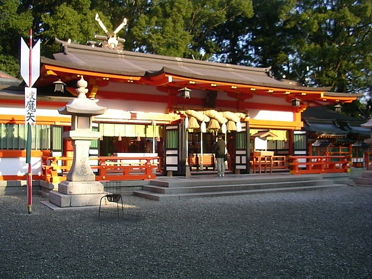 境内右手の参拝用駐車場から100mの距離に本殿がある。短時間で済むが味気ない。