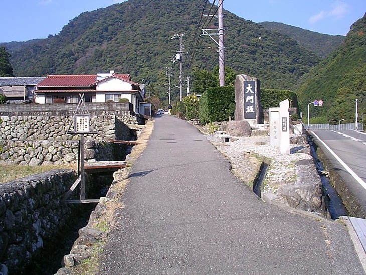 速玉大社から約18km、那智大社に登る大門坂入口。河川公園Pから那智大社まで歩くのがお薦めだ。