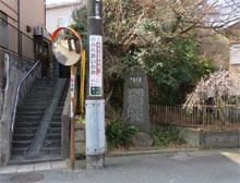 .. 古い文覚像として、東大寺三月堂 (法華堂) にあった塑像が知られているが破損が著しく現在は非公開で、奈良国立博物館の復元模写像だけは ウェブ閲覧サイト で確認できる。 . 右は大御堂橋南詰(地図)の文覚上人邸跡碑 画像をクリック→ 別窓で拡大表示 ※金洗沢: 腰越の約1,500m東、現在の江ノ電七里ガ浜駅付近。平家物語異本では 鎌倉に入ろうとした 九郎義経は金洗沢の関所で 梶原景時に止められ腰越に追い返された、とある。