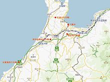 越後国府 (上越市) に入った義仲は先鋒として 今井兼平の6,000騎を派遣、兼平は越中御服山 (富山市の神通川沿い) に進んだ。. 義仲の主力 1万は六動寺 (小矢部川河口付近の六渡寺、地図、般若野の10km北) に待機した。 . 加賀から倶利伽羅峠 (地図) を越えた平家の先鋒 平盛俊は越中盤若野 (富山県高岡市南部) に進み兵を休めた。今井兼平軍は9日早暁に盤若野を奇襲、盛俊軍は善戦したが午後になって退却した。 . 盛俊の率いる3万騎は能登国志雄山 (石川県羽咋市南部) に撤退して布陣した。一方で維盛の率いる7万騎は倶利伽羅峠の東500mの栃波山に布陣して体制を整えた。 右画像は倶利伽羅峠周辺の合戦場地図。 画像をクリック→ 別窓で拡大表示 . |