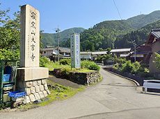 に落ち延びる途中で 義朝一行に遅れ、雪の中を彷徨った頼朝は浅井の北まで迷い込んだ。 .. 頼朝を見つけた老尼が家に連れ帰り、老夫婦が世話をして正月の間を匿った」 と。 . その後は小平という場所を経て青波賀 (青墓) の大炊邸に辿り着くのだが、この老夫婦の部分が実際には草野定康に該当するらしい。 ※大吉堂: 長浜市野瀬町にある大吉寺 (外部サイト、地図) の 前身で、裏山に旧跡が見られるとか。 .参道入口 (右画像、クリック→ 別窓で拡大表示)から細道を 1kmほど登る (車両通行可) 。 . 頼朝の異母兄 朝長を葬った青墓の 圓興廃寺 (別窓) の雰囲気に近い。 |