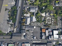 走って行かれる程度の至近距離にあったのは間違いないが、正確な位置は確認されていない。 .. 延応元年 (1239) の三浦合戦では筋替橋から攻め込んだ安達勢に火を掛けられ、数100m東の頼朝法華堂に逃れて (つまり寄せ手の横矢を受けるほど北寄りではない) 一族が自刃したと伝わっている。 . 右は西御門跡を中心にした鳥瞰図 画像をクリック→ 別窓の拡大図へ。 |
