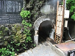 右画像は「走り湯」の噴出口。もちろん垂れ流さず近隣の旅館にパイプで給湯している。