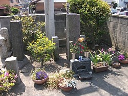 江ノ電の稲村ヶ崎駅から踏み切りを渡って二度左折した角に大舘宗氏主従十一人の遺骸を葬ったと伝わる場所(