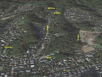 肥田又太郎が奥州 北條義時の使者として上洛の途に就いた。犯土 (土木工事) や建造について陰陽師の結論が纏まらないため陰陽寮の長官に尋ねて結論を得るのが目的である。 . . ※肥田又太郎: 伊豆北條郷北側の肥田原 (地図) を本領にし ていた武士。治承四年 (1180) 8月17日の頼朝挙兵の際に 北條時政が率いる 平兼隆襲撃隊は北條邸から狩野川沿いに北へ、肥田原まで迂回してから山木館を目指して東に進路を改めている。 .. 肥田 ⇔ 日田 ⇔ 仁田に地名が転訛した可能性および日田原が仁田郷に隣接している関係から、肥田一族と 仁田忠常一族が縁戚関係にあったと考える説もある。 . 右画像は仁田忠常邸 (地図) の鳥瞰。画像をクリック→ 忠常邸の明細へ | |||||||||||||||||||||||||||||||||||||||||||||||||||||||||||||||||||||||||||||||||||||||||||||||||||||||||||||||||||||||||||||||||||||||||||||||||||||||||||||||||||||||||||||||||||||||||||||