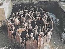 晴。今日、由比浜の大鳥居※を建立した。左親衛 北條時頼が立ち会い、多数の人々が集まった。 写本の原文... 今日被建由比濵大鳥居北條左親衛被監督臨人々群衆云々 . . ※浜の大鳥居: 仁治二年 (1241) 4月3日に「 (地震直後に) 由比浦の大鳥居内の拝殿が潮に引かれ 流失した」との記載があるが、鳥居の倒壊は記録にない。単なる建て替えか倒壊の復旧かが不明なので多少のコメント、同年に載せ切れなかった画像と、現地に建っている石碑の説明文を下に書いておく。 .右は出土した際の画像だが肝心の拡大版が行方不明。見付かったら転載する。