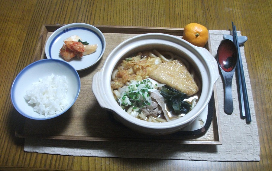 右画像は今朝の食事、油揚げとバラ肉と野菜煮込みうどん、大カブのキムチと 1/3御飯と自家製ミカン付き。入れる野菜によって片栗粉半スプーンでトロミを加えたり、味の濃さを増減しているらしい。. 空腹気味だったら残り御飯の量で調節して、量が増えるようなら 「おとなの振り掛け」 という名のパックを添付する。味付けを少し変えたり材料を加減して変化させれば誤魔化せるって、私が教え込んだのさ。 . |