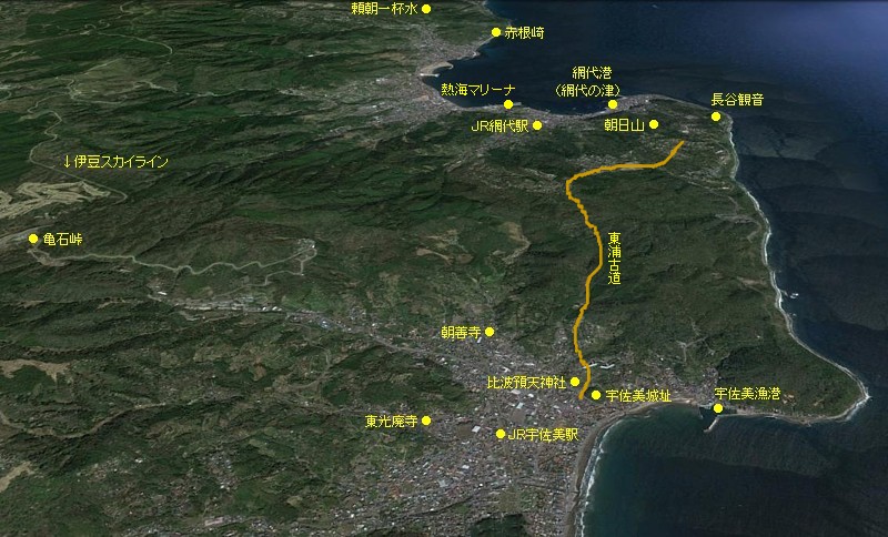 宇佐美峠を越えて網代の津へ、鳥瞰図
