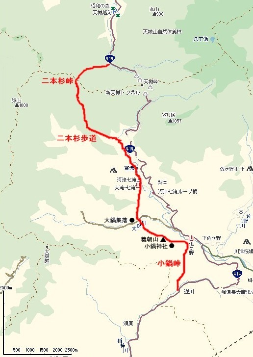 ハリス公使や踊り子たちも通った、旧下田街道・天城峠周辺のルート図