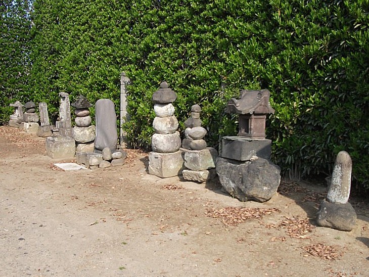 不動堂の裏手、古色蒼然とした五輪塔や石造物・その残欠が残る。鎌倉末期から南北朝時代の遺物か。