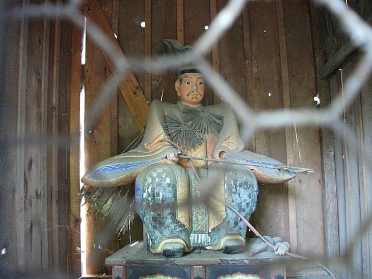 随身門の左袖には弓を持ち箙を負った若い頃の与一義成の像が納められている。左手が落ちてるね。