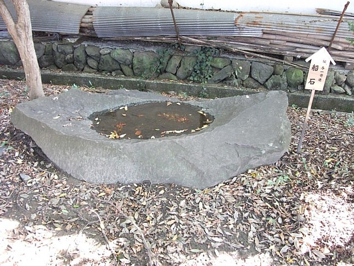 浅利与一寄進と伝わる船石は長さ130cmほどの自然石。参道の中ほど左側に置かれる。
