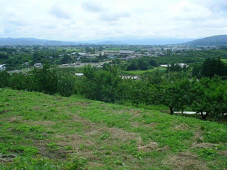 防塁北側から。国道4号沿いに県北中学校と、中央やや左に国道のチェーン着脱場が見える。