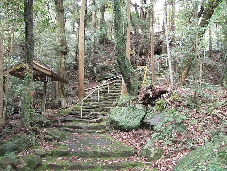こちらは弐の鳥居から毘沙門堂へ登る更に急峻な石段。手摺りがあるのは有り難い。