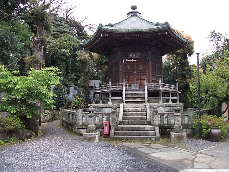 境内の六角釈迦堂は昭和19年に落慶した。伴左衛門の末裔の建立・寄進による。