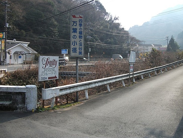 松川沿いにローカルな散歩道「万葉の小径」が続く。ほぼ平安時代の古道ルートだ。/b>