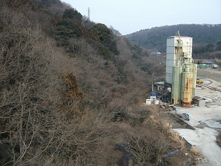 奥野ダム近くの中伊豆バイパスから稚児ヶ渕方向を。奥野道は左側の崖上を通っている。