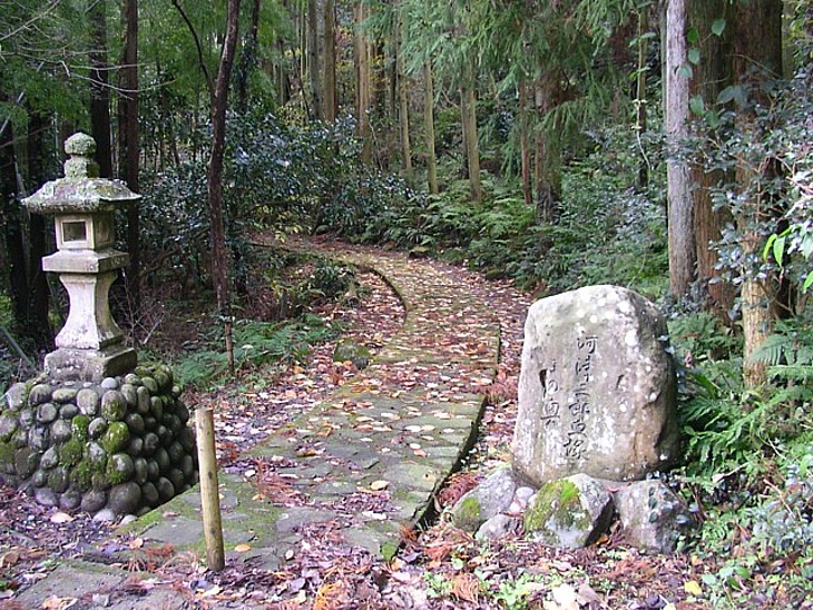 浮山別荘地を抜け石畳の道が血塚へ続く。土砂に埋もれた旧道は復旧・整備された。