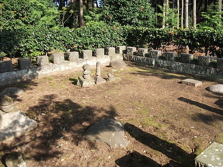 境内の南西隅、歴史資料館に近く残る「法照禅師月船深(王偏)海塔所と普光庵跡」。