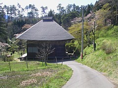 大法寺観音堂の横を登るとすぐ左に三重塔裏手に続く細道がある。ここまでが青木村でカーブの先が上田市の行政区、舗装道路を道なりに400mほど登ると萬年山東昌寺に至る。
