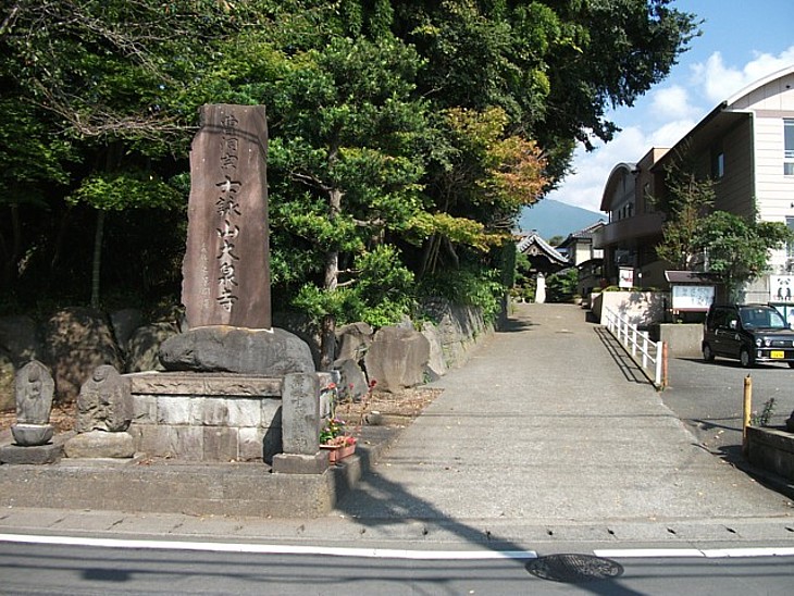 大型車が多い根方街道沿い、広重の東海道五十三次が描いた富士の山裾に位置する。
